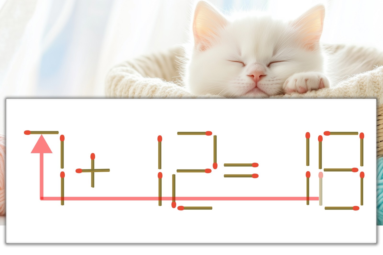 「8」を別の数字に変化させると答えが導き出せます。「8」のマッチ棒を1本移動して、「1」を「7」にしてみましょう。すると、「7+12=19」が成立します。