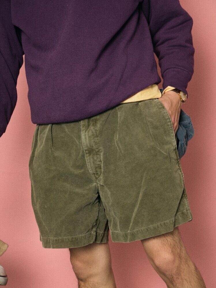 改めてアイテムのご紹介を。ベースとなっているのは、1950〜60年代にかけてフランス軍で採用されていたM-52ショーツ。2タックでゆったりとした腰回りと太めのシルエットが最大の特徴で、ヴィンテージでありながら現代の着こなしにも取り入れやすい名作とされています。そんなM-52ショーツを、シルエットはそのままにコーデュロイにした本作。秋冬素材のイメージではありますが、実は吸水性と速乾性に優れており春夏にも向いている素材。クラシックな背景がありながら、どんなスタイルにも合わせやすくて、穿き心地にも優れた現代のトラッド好き必携のショーツに仕上がっています。
