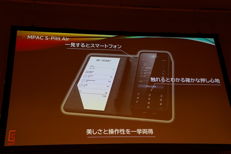もう一種類の端末として「S-Pitt Mobile」もあり、こちらはデュアルディスプレイを備え、レシート印刷にも対応したモデル。齋藤氏は「この二つの端末で、市場をリードしていきたいと考えています」とアピールした。