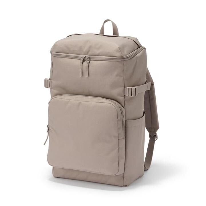 特許技術による肩の負担を軽減する肩紐をはじめ、使い勝手にこだわったリュックです。生地の表地と裏地には再生素材を使用し、一部に撥水加工を施しています。