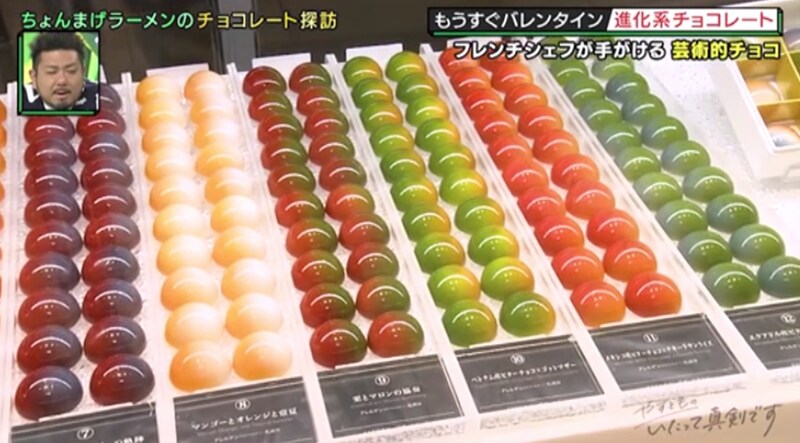 続いてやって来たのは、梅田の繁華街のど真ん中にある大丸梅田店。人気店がひしめくスイーツ激戦区“デパ地下”で勝負するホワイトチョコレートの専門店を訪ねる。京都のフレンチレストランが手がけるお店とあり、雅やかで色彩豊かなチョコスイーツはまるで宝石のよう。「めっちゃキレイ!」と目を輝かせる田渕ときむは、ホワイトチョコに栗や柚子などを合わせたオリジナリティーあふれるチョコスイーツに「うますぎる!」と悶絶!