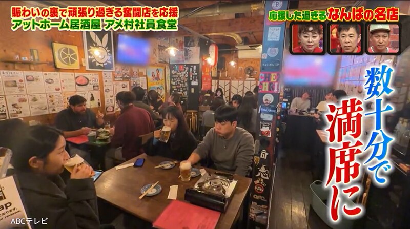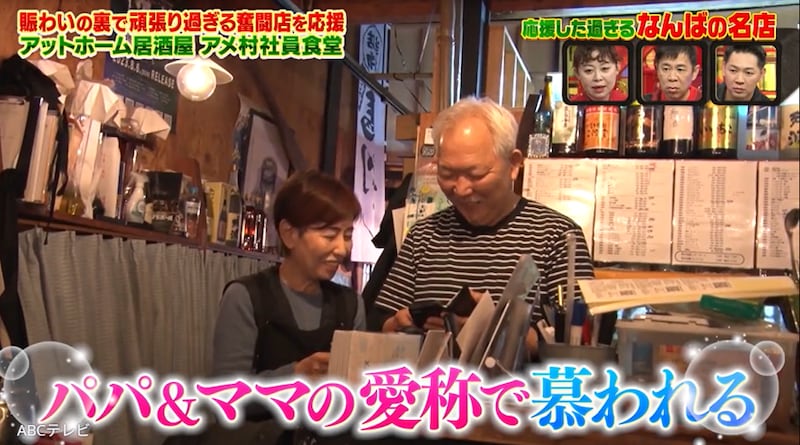 アメ社が人気な理由は、おいしい料理に加えて、店を切り盛りする夫婦の人柄の良さ。料理担当のパパは歌うことが大好きで、接客担当のママはタレントのなるみが「若っ!」と驚くほど美しい。2人は、多くのなんばっ子たちから慕われ「パパとママに会いに来ている」「アットホームという言葉が似合う。実家に帰ってくるぞって感じ」などと愛されている。