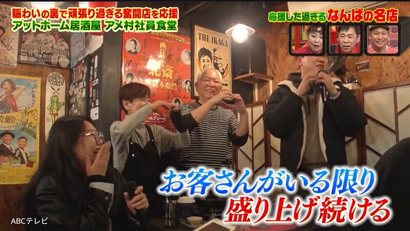 アメ社は、営業開始からものの数十分で満席になり、閉店の夜11時まで賑やか。夫婦は常に大忙しだが、本当の両親のようにお客さんたちに優しく、中でもパパは、「一番張り切っている」という恒例のカラオケ熱唱タイムで盛り上げまくり! 夫婦は、最後のお客さんを見送った後も、掃除や皿洗いなど山積みの作業をこなし、深夜2時半に自宅へ帰っていった。