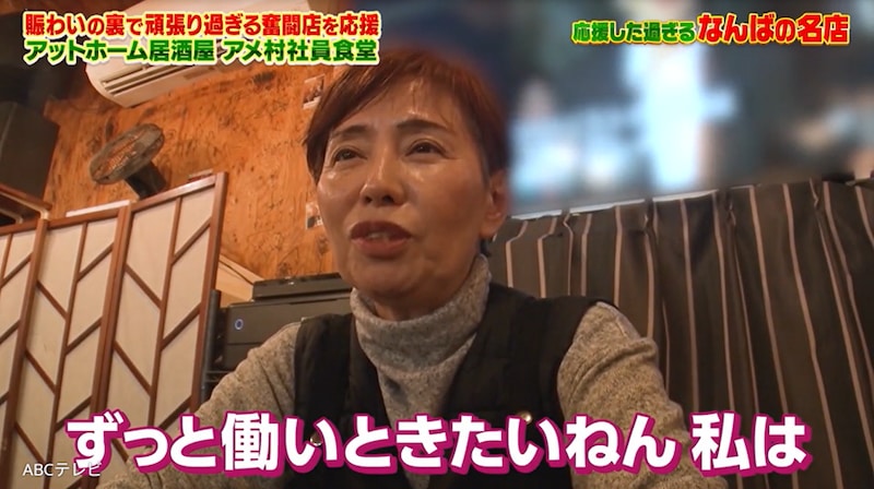 アメ社夫婦は、このようなハードな生活を15年以上も送っているが、つらそうな姿を一切見せず、むしろ常に笑顔。「この体が続く限りどんな形であれやっていきたい」「ずっと働いときたいねん私は。体力続く限り頑張る」とカメラに向かって語ってくれた。