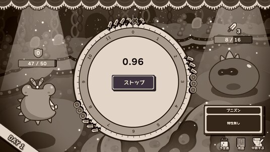 自分の体内時計を信じ、計測が難しい強い技を発動するか、堅実に勝負を進めるか、プレイヤーの戦略が試されます。