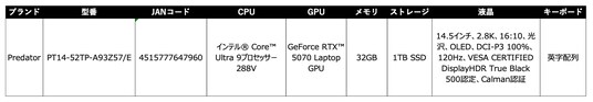 「PREDATOR TRITON 14 AI 「PT14-52TP-A93Z57/E」