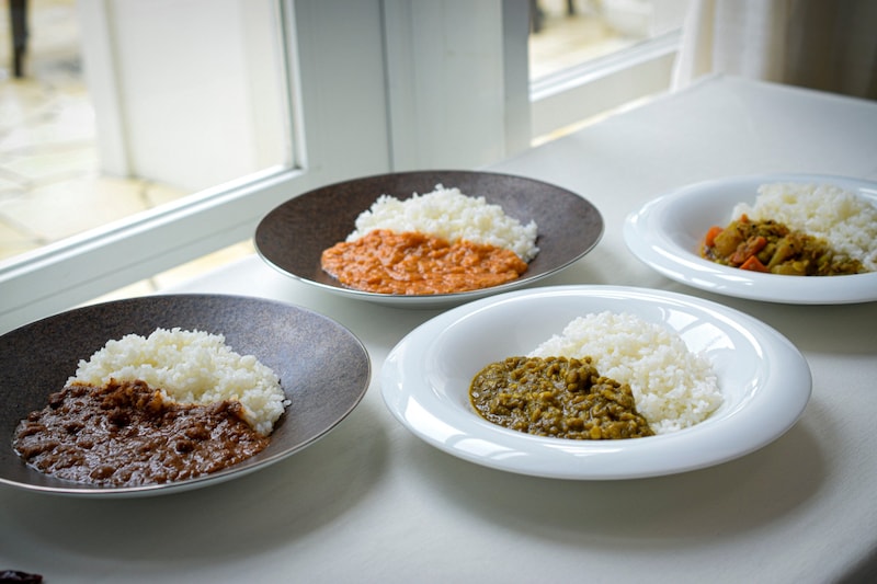“スズキ食堂”と銘打たれたレトルトカレーは、大根、人参、トゥール豆を使った「大根サンバル」、レンズ豆をトマトと合わせた「トマトレンズダール」、茶ひよこ豆を玉ねぎと合わせた「茶ひよこ豆マサラ」、黄ムング豆と小松菜を合わせた「青菜ムングダール」の4種類。