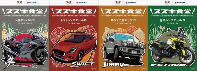 パッケージデザインには同社の「HAYABUSA」、「スイフト」、「ジムニー」、「V-STROM1050DE」が描かれています。