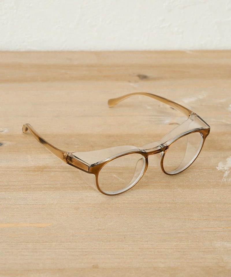 透明なフードでナチュラルに目元を守りながら、肌馴染みの良いブラウン系カラーでオシャレも忘れません。