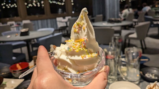 別腹デザートは、新鮮なフルーツ類やケーキ、わらび餅やプリンなどなど。自分好みにトッピングできるソフトクリームもおすすめです。また、 アルコール飲み放題を付けることもできるので、お酒好きの方にも嬉しい内容でした。