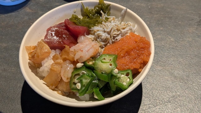 和食・洋食ともに種類豊富ですが、やっぱり人気は海鮮丼。天然本まぐろの赤身や中トロなど、好きな具材を好きなだけのせて、自分好みの一杯を楽しめます。