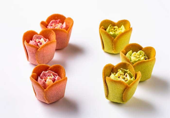 コラボ限定〈ピスタチオバター〉は、芳醇なピスタチオとバターのショコラクリームを、グリーンの花びらラングドシャにとろりと閉じ込めました。