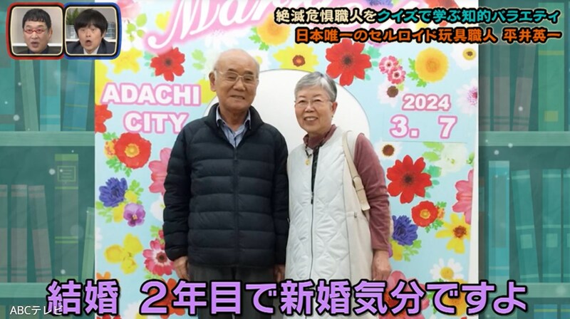 そして、実は平井さんは2024年に結婚したばかりだというのです!それが妻の節子さん(78歳)です。英一さんは初婚で、再婚の節子さんとは30代の時に知り合っていたそうで、当時から愛想の良い人だからいいなと思っていたそう。8年前に節子さんのご主人が亡くなり、その後見事にゴールイン。