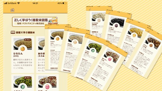 なお、本ゲームに掲載されている「雑穀米図鑑」は、雑穀米をはじめとした食品を取り扱うベストアメニティ株式会社(福岡県久留米市)の監修のもと制作しています。
