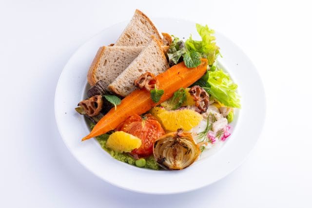「ROASTED VEGETABLE PLATE SET」ロースト野菜とデリの盛り合わせ (セット:2,200円(11:00~15:00)、単品 :1,850円 (ワンドリンク・食事オーダーの方))/MARGARET HOWELL SHOP & CAFE(南館1階)