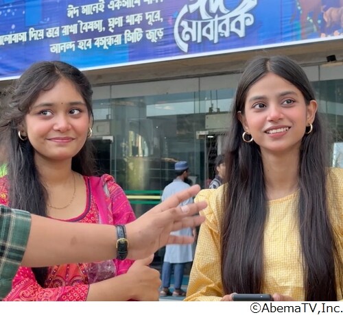 「めちゃくちゃ美人ですね!」「めちゃカワじゃん!」「岡田結実ちゃんみたい」と、バングラデシュ美人に大興奮、興味津々のくるまは、カップルを質問攻めに…。