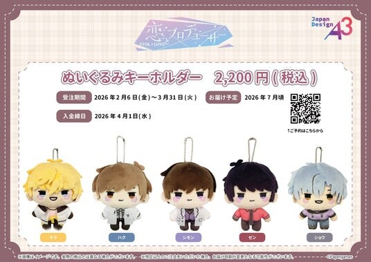 恋愛シミュレーションゲーム『恋とプロデューサー~EVOL×LOVE~』(以下、『恋プロ』)より、ぬいぐるみキーホルダーが登場!