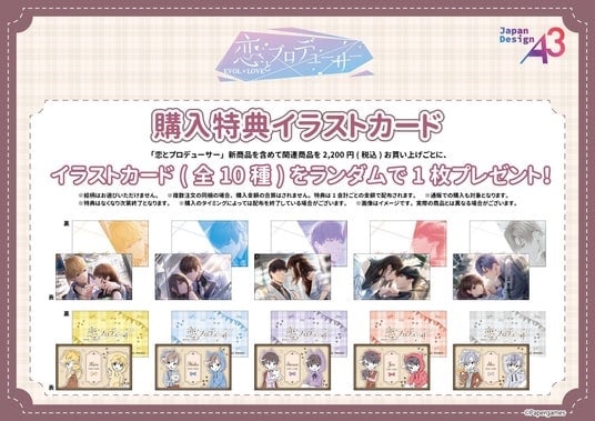 『恋とプロデューサー』新商品を含めて関連商品を1会計2,200円(税込)お買い上げごとに、購入特典としてイラストカード(全10種)をランダムで1枚プレゼント。