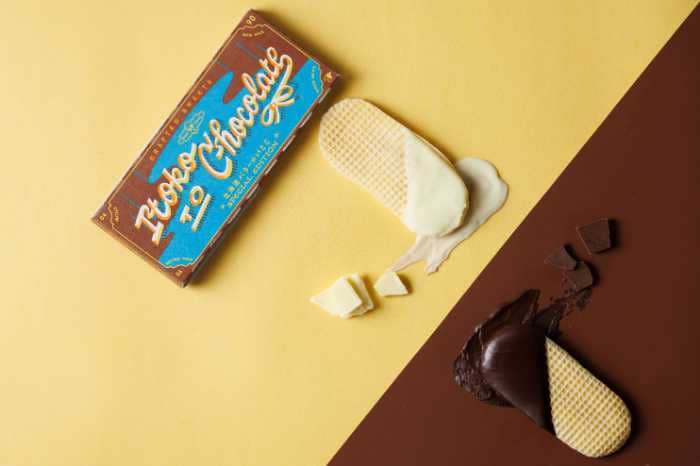 半分にコーティングすることで、2つのフレーバーと食感を1枚で楽しめます。