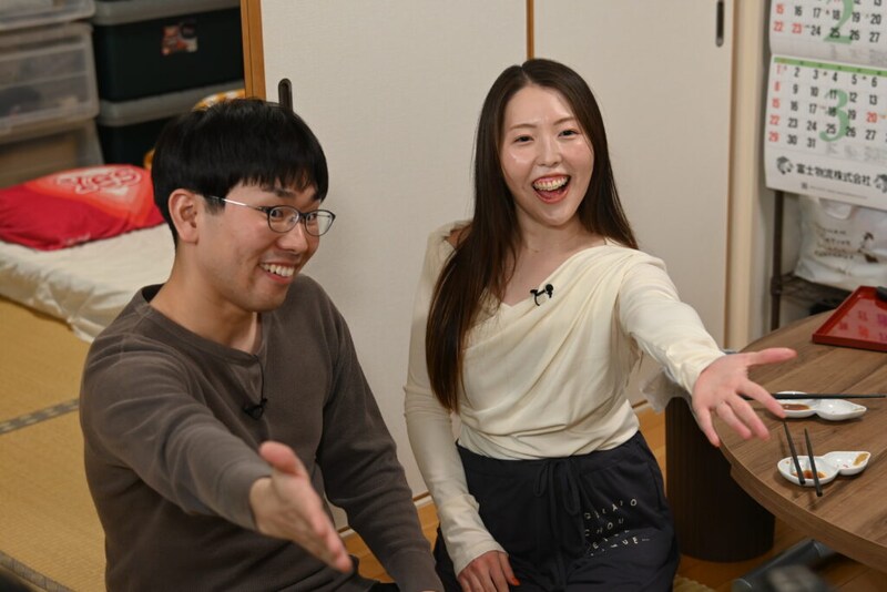 ラストの5組目は2022年7月出場、藤井と井上がMCを務めてからの新婚さん!ここ神奈川県鎌倉市にお住まいの当時25歳と32歳の夫婦。彼らには、スタジオ全体の度肝を抜く魔法の言葉「ぽよ語」を使い、番組公式TikTokで335万再生を記録した実績が…。MC2人がご自宅を訪ねると、ぽよ家のウェルカムフードとして崎陽軒の「おうちでジャンボシウマイ mini」でおもてなし。MC藤井が新婚さんの家を訪ねるのは初めてのこと。ダイエットでキレイになった妻だったが、現在も不思議なぽよワールドが炸裂。