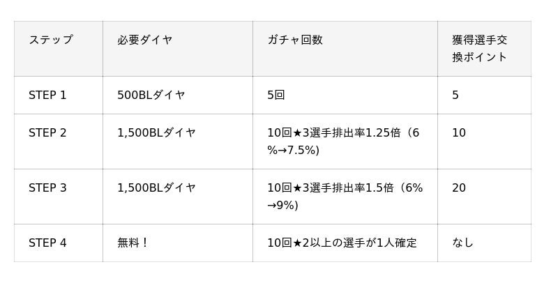 (5)STEP4はなんと無料!「有償限定ステップアップ選手ガチャ」の開催