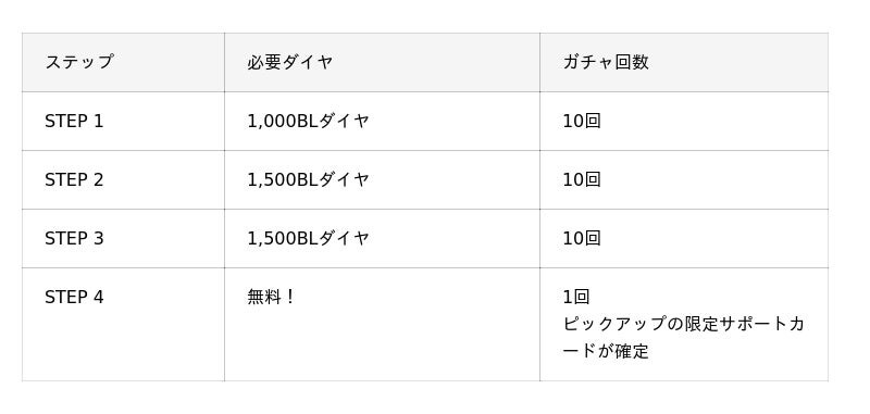 ステップアップガチャとは、ガチャを引くことでSTEPが1段階上昇していく限定ガチャです。