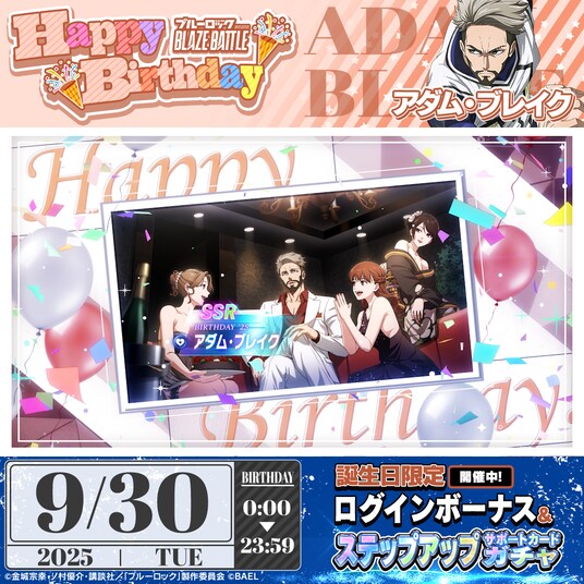 (8)【アダム・ブレイク】の誕生日を記念して「BIRTHDAY'25 ステップアップサポートカードガチャ」を開催