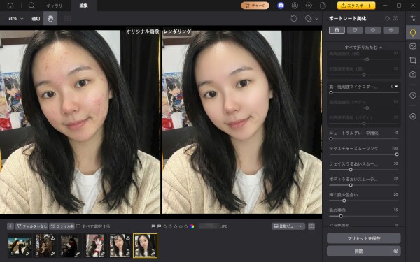 ★AI解析精度が高く、肌本来の質感を活かした補正ができる