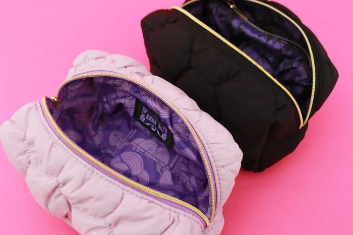 ぷくぷくとしたキルティングが愛らしいポーチ。ファスナー付きポケットや仕切りポケットを備え、機能性も充実しています。細部までこだわったデザインで、コスメや小物の整理にも便利です。