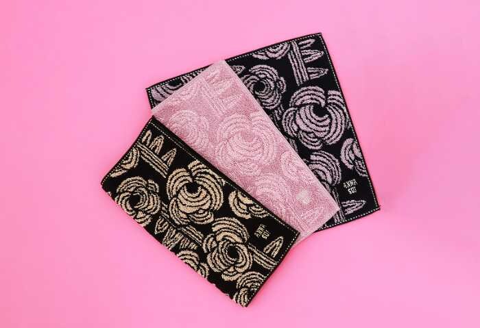 ポーチやバッグとお揃いの「RIBBED ROSES」柄で統一感のあるコーディネートが楽しめます。