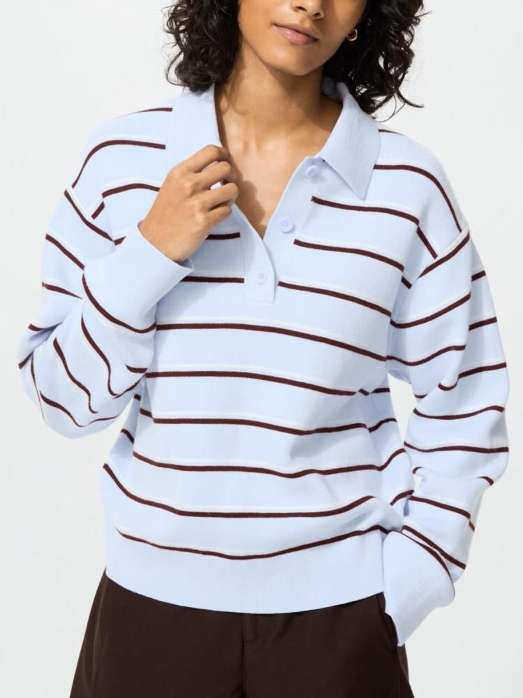 大ぶりの襟付きセーターは、一枚で着映えするこの春必見の一着。