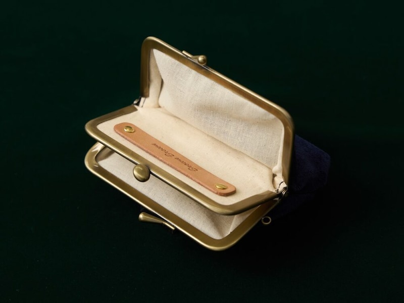 がま口財布を使っている人に聞くと、「形は好きなんだけどお札と小銭、カードを分けられないのがネック」とよく聞くのですが、そんな悩みは二口の金具によって解決。そして、ガバッと開閉部が開くので奥に入った小銭も容易に取り出せます。内側がコットンで内張してあるのも嬉しいポイント。