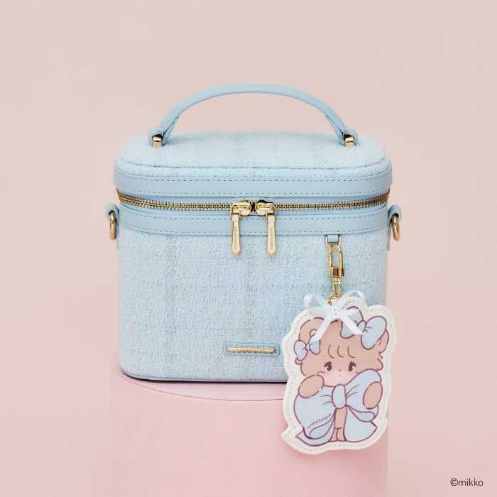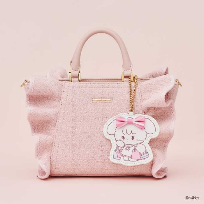 人気のフリルバッグに特別アートをデザイン。キャラクターたちがおでかけする姿が愛らしい仕上がり。