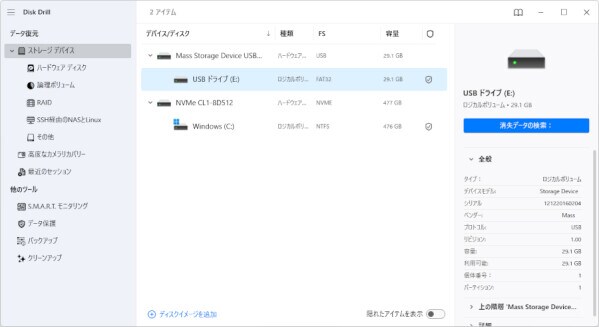 強み: 動作が軽く、復元可能性を「良好」などで表示してくれる。