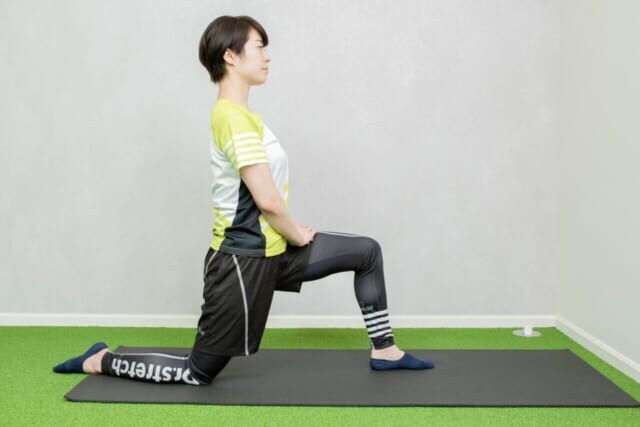 (1)左ひざを立て、右ひざを床につける