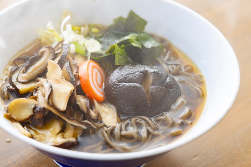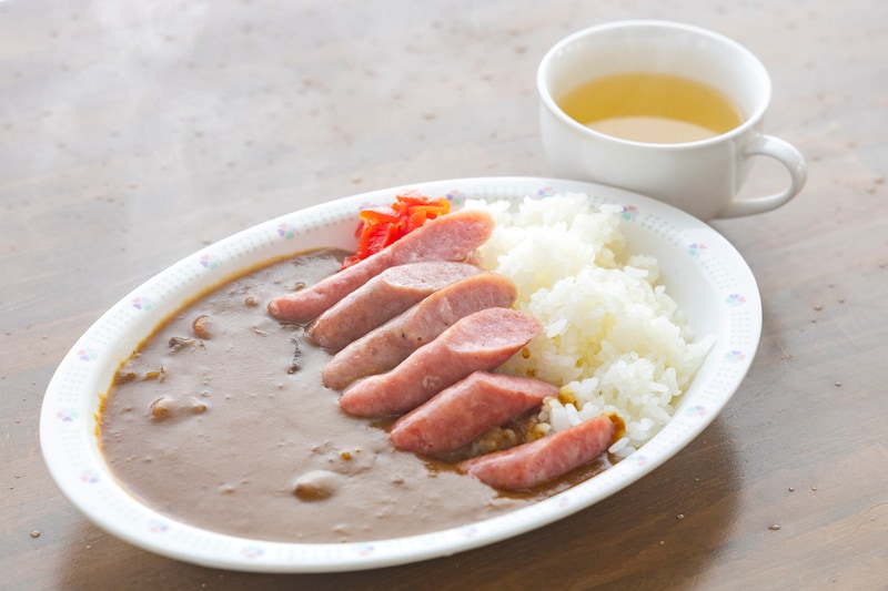 山頂レストラン「カミーン」では、山之村地区産のそば粉を使った手打ちそばや、地元牧場のソーセージがのったカレーなど、地産地消のメニューが並ぶ。