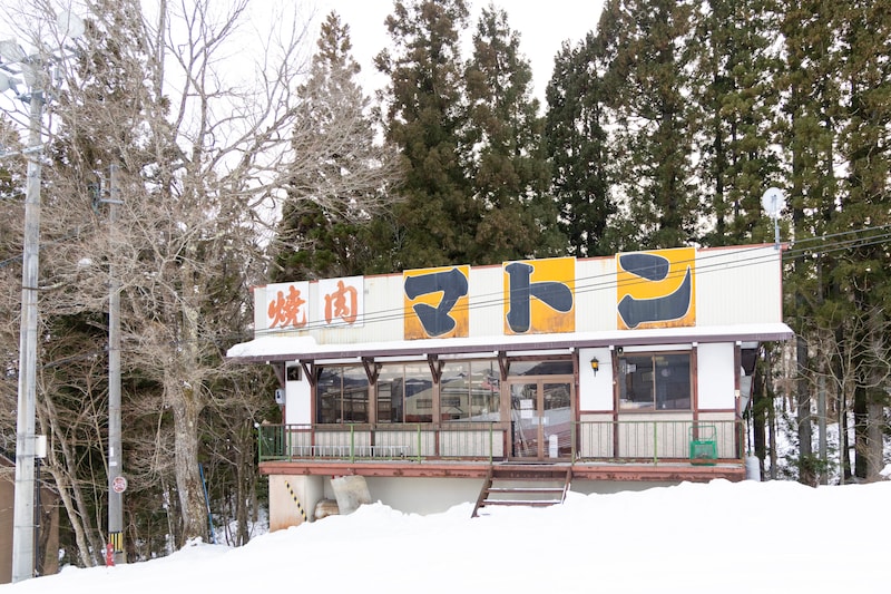 先ほど熱弁をふるってくれたAさんが強く勧めてくれた、冬だけオープンするという、ゲレンデ下部にある焼肉店「マトン」に行ってみた。残念ながらは定休日だったが、店先には“間違いない”空気が漂っていた。