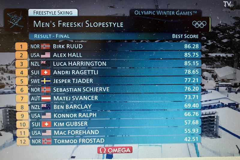 北京五輪ビッグエア金メダリストのバーク・ルード(BIRK RUUD)が、前回スロープスタイル王者のアレックス・ホール(ALEX HALL)との直接対決を制し、銀メダルに退けて頂点へ。世界王者の貫禄を見せつけた。銅メダルは、初出場ながら昨シーズンのX-Gamesスロープスタイルを制した若き才能、ルカ・ハリントン(LUCA HARRINGTON)が獲得。