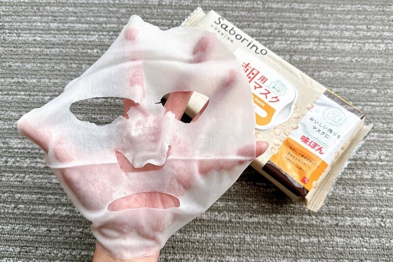 「味ぽん」の原料を使用したということで、パッケージからもポン酢の見た目や香りを想像してしまいますが、シートマスクは他の「サボリーノ」シリーズと同様の見た目です。
