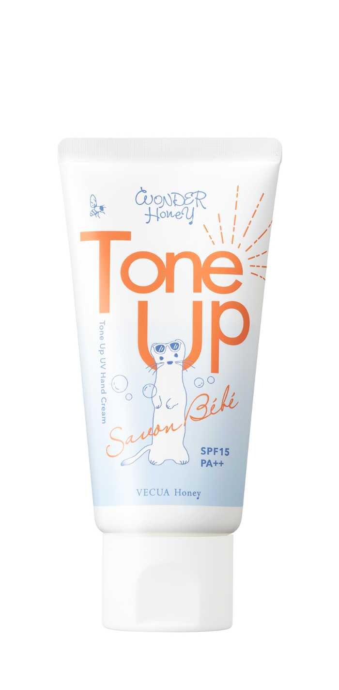 ワンダーハニートーンアップUVハンドクリームサボンベベ<日焼け止めハンドクリーム>は、40gで1,100円(税込)。