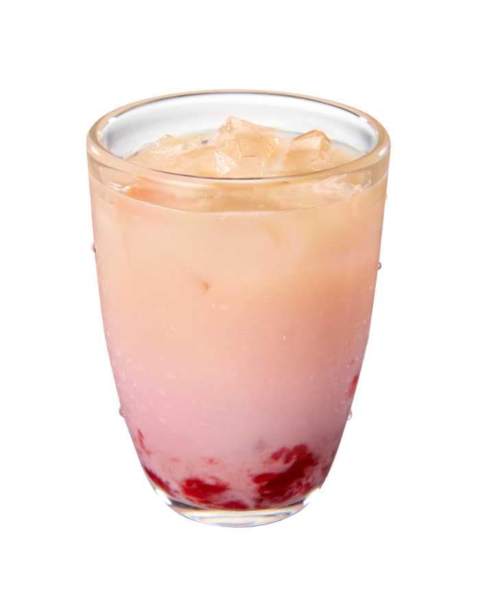 ジャスミン茶に果肉入りストロベリーソースとミルクを合わせた春色ラテ。やさしい甘さと華やかな香りが広がります。