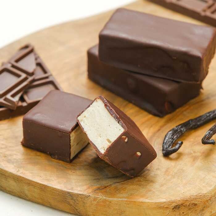 噛んだ瞬間にチョコが心地よく弾け、なめらかにほどける口どけへと変化します。中から広がるのは、バニラビーンズを使用した甘く上品な香り。