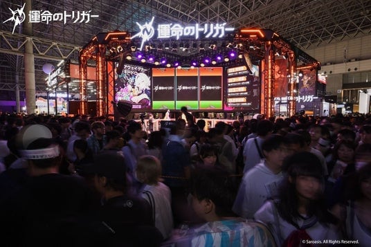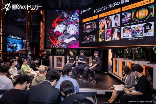 会期中の一般公開日には、ハードコアなシューター要素とSDキャラクターの魅力を組み合わせた試遊エリアが設置され、来場者を強く惹きつけました。多くのプレイヤーが足を止めて体験し、その没入感あるプレイに夢中となる姿が見られました。 さらに、ブースを大いに盛り上げたのは、人気キャラクターを忠実に再現したトップコスプレイヤー6名による華やかなステージパフォーマンスです。天川星夏さんはカミール役、しょこらさんはハクスリー役として登場し、昨年に続きイオス役のたぶ子さん、キラ役のあまねひなさんも参加。さらに、獠隠役のズミさん、ミンディ役の花崎Makuraさんも加わり、衣装や武器、細やかな仕草に至るまで緻密に再現しました。その姿はまるで『運命のトリガー』の世界が現実に出現したかのようで、ステージ前には連日多くの来場者が詰めかけ、スマートフォンで撮影する姿が目立ち、圧倒的な盛り上がりを見せました。来場者が気軽に参加できる抽選イベント、豪華なノベルティ配布も加わり、ブースは連日活気にあふれていました。