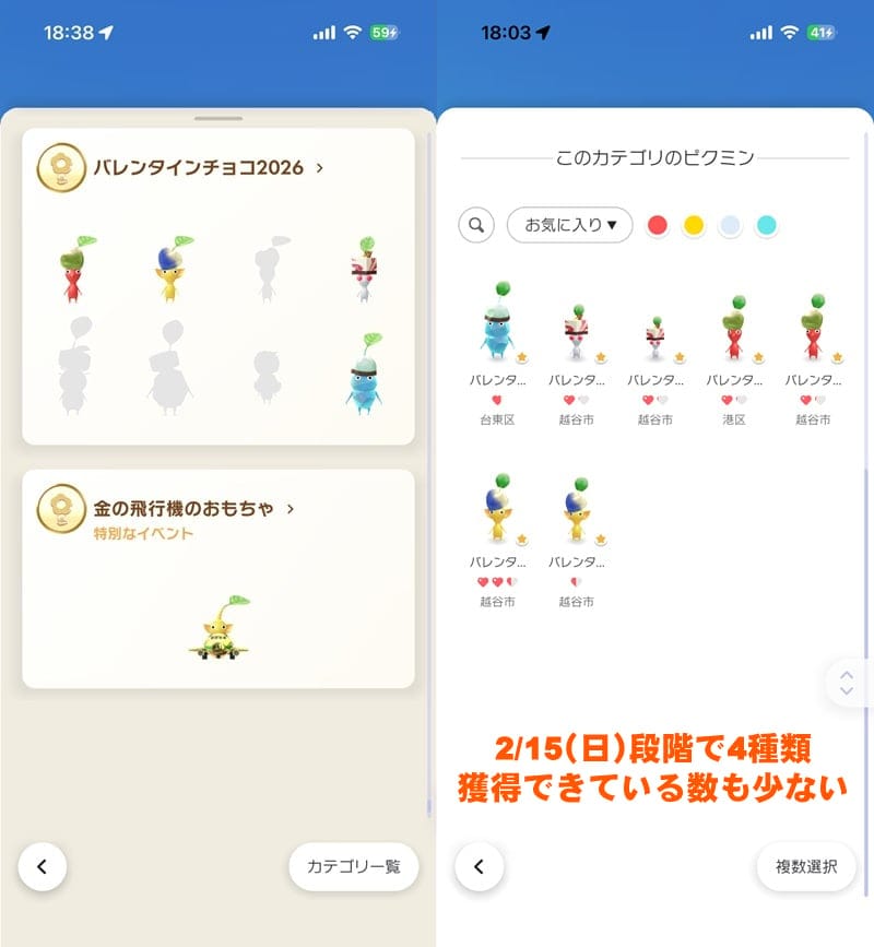 2026年2月1日(日)から始まった位置情報ゲーム『ピクミン ブルーム』のバレインタインチョコイベントも15日目。