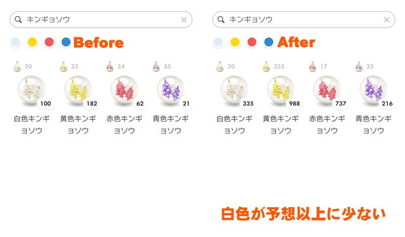 思い通りに進まない最大の理由は、ルーレットもといキンギョソウのエキスは花びらが枯渇しているからだ。