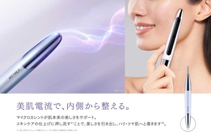 もう一方のヘッドには、エステや医療用治療器でも使用される微弱電流「マイクロカレント」(業務用の美容機器と同クラス500μA)を搭載。
