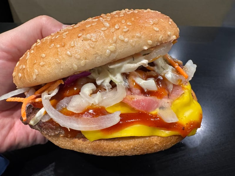 バーガーキングはオーストラリアだけ「ハングリージャックス」という店名で営業されている。シーザーサラダのように細かくカットされたサラダ的野菜がたっぷりとサンドされていて、食べると野菜の広がりが早いのです。つまり、野菜エキスの広がりも早く、パティとチーズの旨味を広げる助けもしてくれているし、なにより、食感がザクザク楽しい!