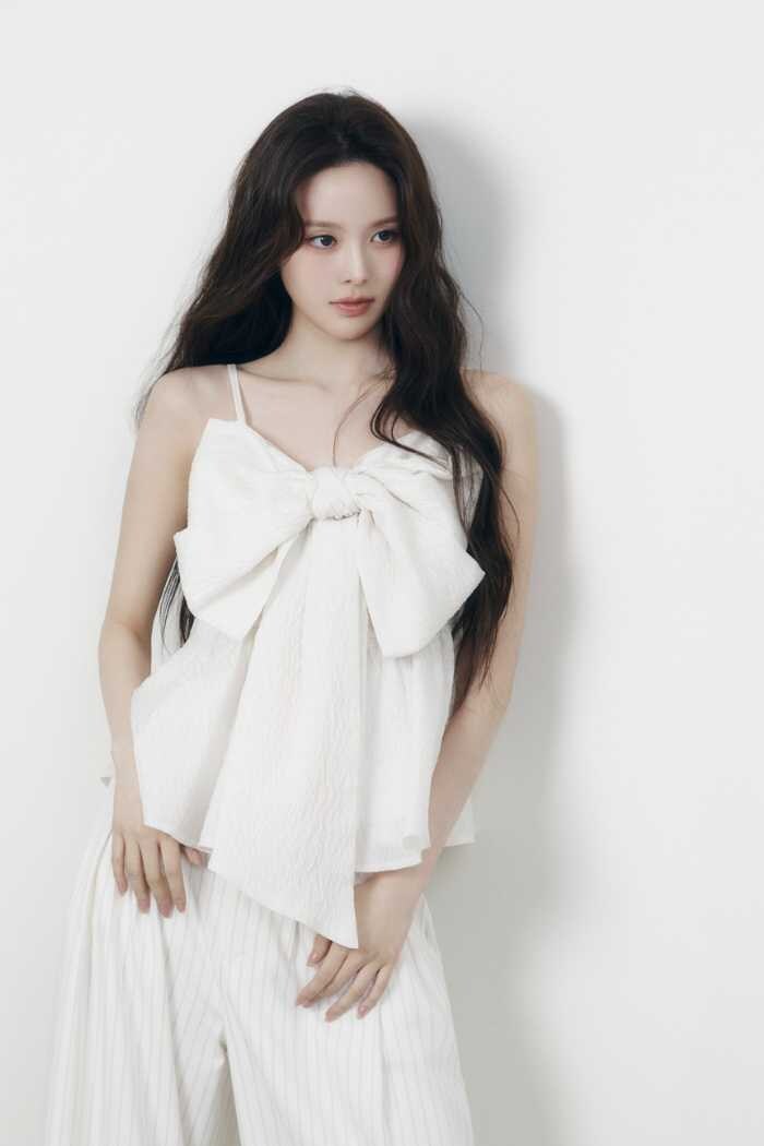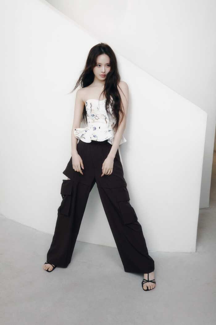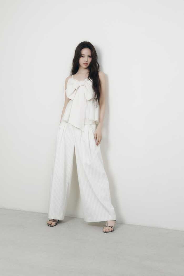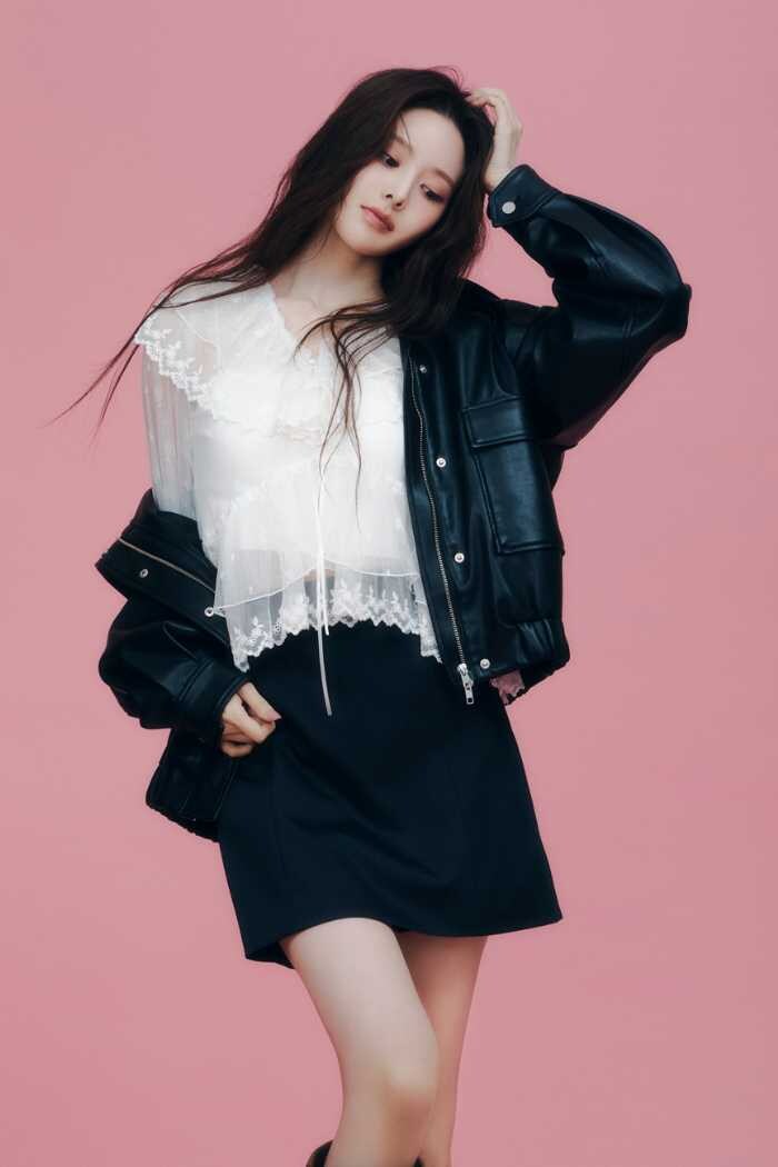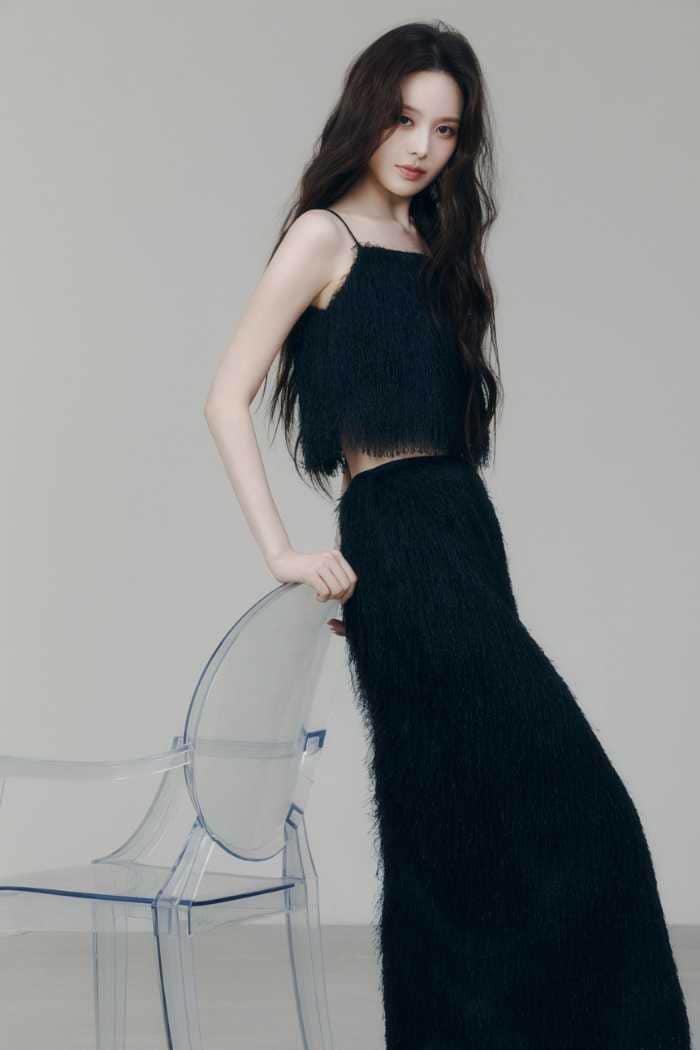 無限の可能性を秘めたiznaのバン・ジミンが纏うことで、モードとフェミニンが融合。洗練された都会的なムードの中に、どこか儚く透明感のある魅力を感じさせるビジュアルに仕上がっています。