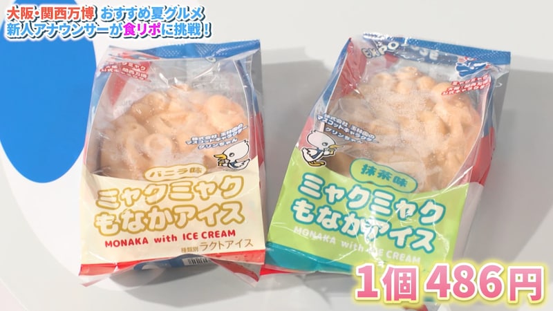 抹茶味を選んだ吉澤アナは、「もなか部分とアイスとのなじみが良くて美味しいです。そして中の抹茶アイスは濃厚で香りがふわっと香り、相性抜群です!」とコメント。バニラ味を食べた諸國アナは「昔ながらのさっぱりしたアイス。暑いときに食べたら体中冷えていいですね~」としっかりリポートしました。