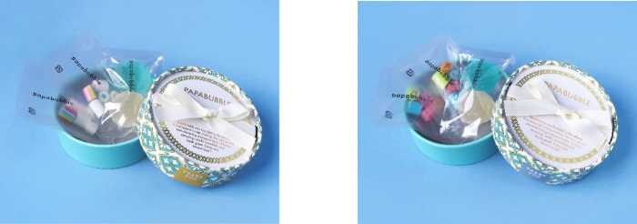 いずれも専用ショッパー付き。水色×白×黄色のスペインタイル柄パッケージが爽やかな印象を演出します。